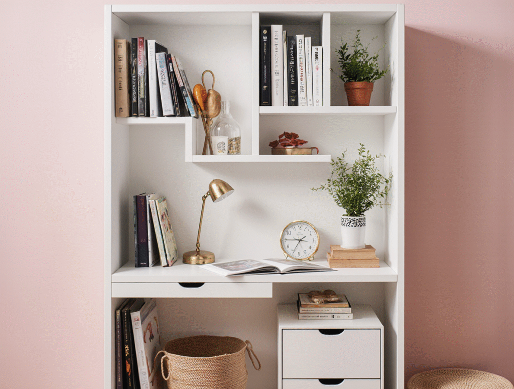 One of the most effective ways to save space is by using a fold-down desk. These desks can be mounted on walls, providing a dedicated study area that can be folded up when not in use. This solution is perfect for tiny spaces where a permanent desk might not be feasible.