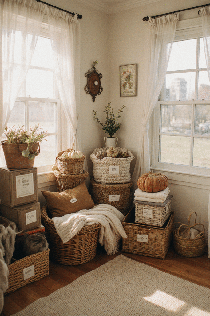 To maximize storage for fall, consider using stackable containers, bins, and baskets to store seasonal items like blankets, decorations, and out-of-season clothing. Labeling these containers can help you quickly identify what’s inside.